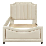 Twin Size Upholstered Daybed With Classic Stripe Shaped Headboard - Beige