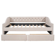 Full Size Upholstered Daybed With Two Drawers, Slat Support - Beige