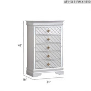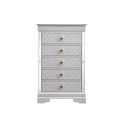 - Embossed "X" Design: Silver Champagne embossed "X" design on wood veneers for a stylish bedroom group highlight.