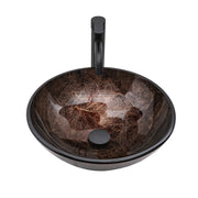 Textured Vessel Sink With Faucet And Pop Up Drain, Oval Basin Vanity For Bathroom - Brown