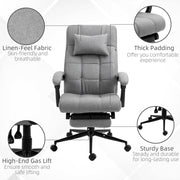 Vinsetto - Executive Linen-Feel Fabric Office Chair High Back Swivel Task Chair With Adjustable Height Upholstered Retractable Footrest, Headrest And Padded Armrest - Light Gray