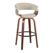 Vintage Mod - Mid-Century Modern Fixed Height Barstool With Swivel & Round Footrest (Set of 2) - Walnut / Cream