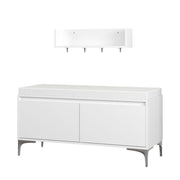 Wall Mounted Entryway Shelf With Hooks And Storage Bench Set - Off White