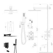 Wall Mounted Square Shower System With Waterfall Tub Spout And 12" Shower Head - Oil-Rubbed Bronze