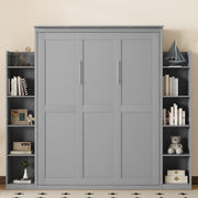 Queen Size Murphy Wall Bed With Shelves And LED Lights - Gray