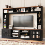Wall Unit Entertainment Center With Bookshelves For TVs Up To 80", Modern TV Stand Media Console With Cabinets, Tempered Glass Doors And Adjustable Shelves For Living Room - Black