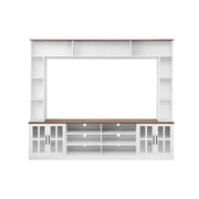 Wall Unit Entertainment Center With Bookshelves For TVs Up To 80", Modern TV Stand Media Console With Cabinets, Tempered Glass Doors And Adjustable Shelves For Living Room - White
