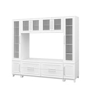 Wall Unit Entertainment Center With Glass Doors For TVs Up To 75" With Drawers For Living Room - White