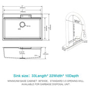 Modern Quartz Composite Waterfall Kitchen Sink With Pull Out Faucet, 33 X 22" - Black