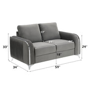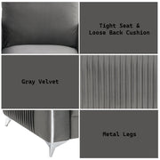 • Modern Elegance: This velvet living room set showcases a modern design with armrests featuring a unique vertical 3D effect, adding texture and sophistication to its overall look.
