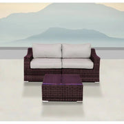 - Complete 3-Piece Loveseat Set for Two: Includes a wide two-seater loveseat, one coffee table with a tempered glass top, and four deep cushions offering a cohesive, comfortable seating arrangement for patios, porches, or balconies.