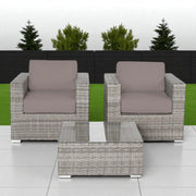 Rattan Seating Set With Cushions And Glass Table Top - Gray