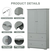 Wide Bathroom Storage Cabinet, Freestanding Storage Cabinet With Two Drawers And Adjustable Shelf, MDF Board With Painted Finish - Gray