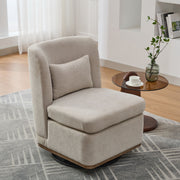 Wide Modern Chenille Cushioned Armless Metal Base 360° Swivel Chair With Pillow