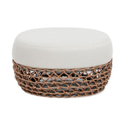Willow - Round Upholstered Woven Patio Ottoman, Wicker Frame - Wheat Beige / Golden Brown