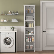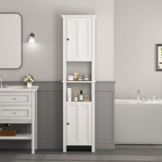 Wooden Bathroom Floor Storage Cabinet With 2 Doors And 6 Shelves - White