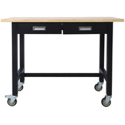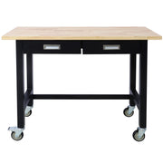 Work Bench, Workbench With Drawer Storage, Heavy Duty Bamboo Wood Work Table With Wheels For Garage Home Office - Black / Light Brown