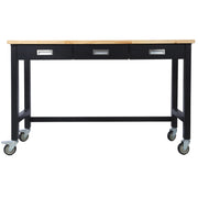 60" Work Bench, Workbench With Drawer Storage, Heavy Duty Bamboo Wood Work Table With Wheels For Garage Home Office - Black / Light Brown
