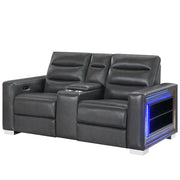 Yamein - Power Reclining Loveseat With Bookcase Arms And LED Lights - Charcoal
