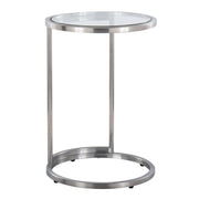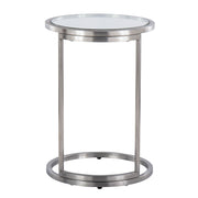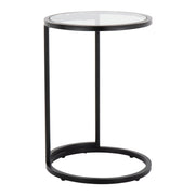 - Stylish Design: The Round Zenn End Table boasts a contemporary design with a gracefully cantilevered tempered glass shelf atop a sturdy metal frame, making it a versatile addition to any room.