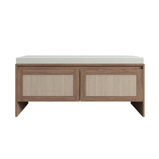 View full detailsStorage Bench With Cushion, Shoe Cabinet With 2 Doors - Antique Natural / Rattan