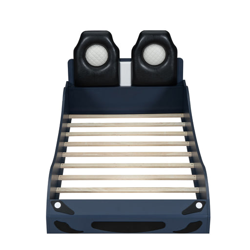 View full detailsRace Car Shaped Platform Bed With LED And Upholstered Backrest In