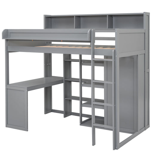 View full detailsLoft Bed With Built In Desk, Storage Shelves, And Wardrobe
