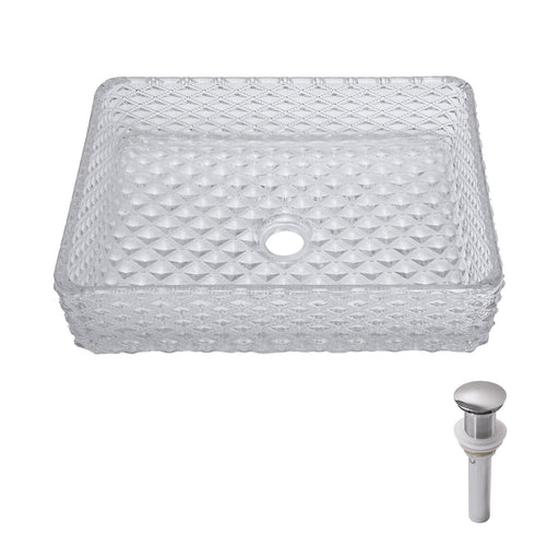 View full detailsClear Vessel Sink Rectangle Above Counter Bathroom Basin With Pop Up Drain, No Faucet - Clear