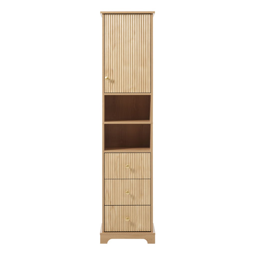 View full detailsTall Bathroom Cabinet With 1 Door, 3 Drawers, Open Storage - Wood
