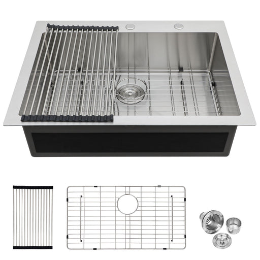 View full details33" Drop In Kitchen Sink Single Bowl 16 Gauge Stainless Steel Ledge Workstation - Black