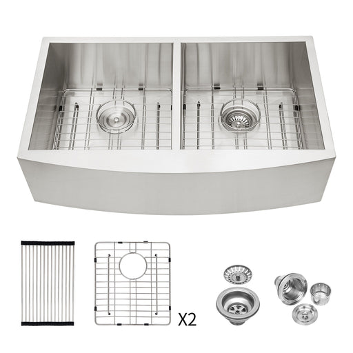 Double Bowl: 33" design allows efficient multitasking with separate cleaning areas. Premium Construction: Made from 16 Gauge T-304 Stainless Steel...