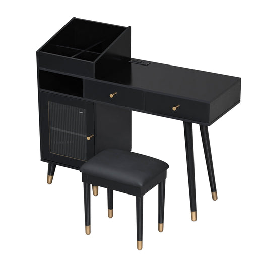 View full detailsModern Makeup Vanity Desk With Drawers Cabinet & Charging Port Engineered Wood Space Saving Design For Small Places - Black