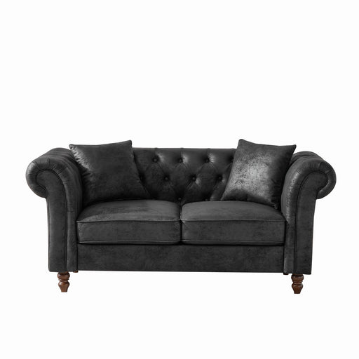 View full detailsChesterfield Velvet Upholstery Fabric Loveseat With Roll Armrest And Nailhead