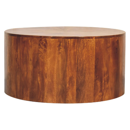 Light Walnut Circular Nightstand With Open Slot - This round style bedside has been constructed from 100% solid mango wood and has one drawer with...