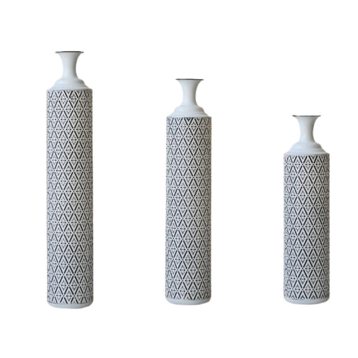 View full detailsModern Floor Vase Set Metal Vases With Geometric Pattern, 3 Piece Home Decor Set - White / Black
