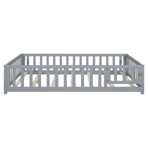 View full detailsMontessori - Full Size Wooden Floor Platform Bed With Fence And Door, Montessori Floor Bed Frame With Support Slats For Toddlers - Gray