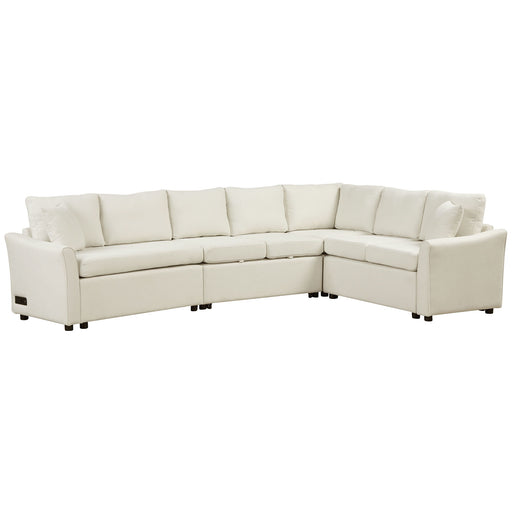 View full detailsU-Shaped Sectional Sofa Pull Out Sofa Bed With Two USB Ports, Two Power Sockets, Three Back Pillows And A Storage Chaise For Living Room