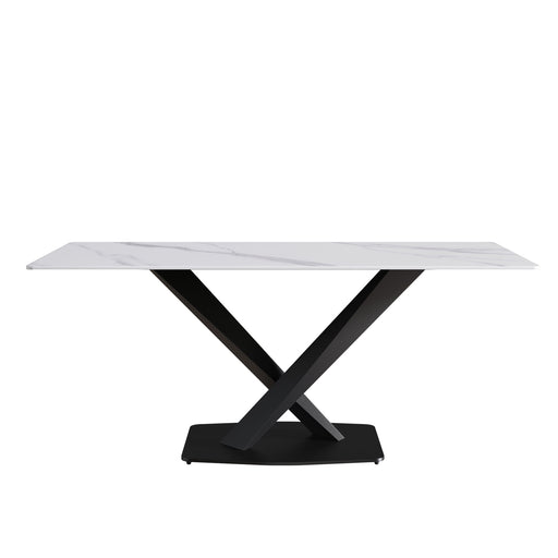 View full detailsModern Artificial Stone Straight Edge Metal X Leg Dining Table, 6 People
