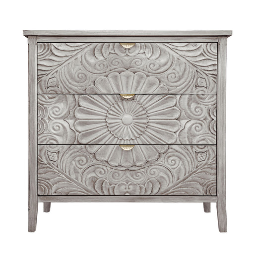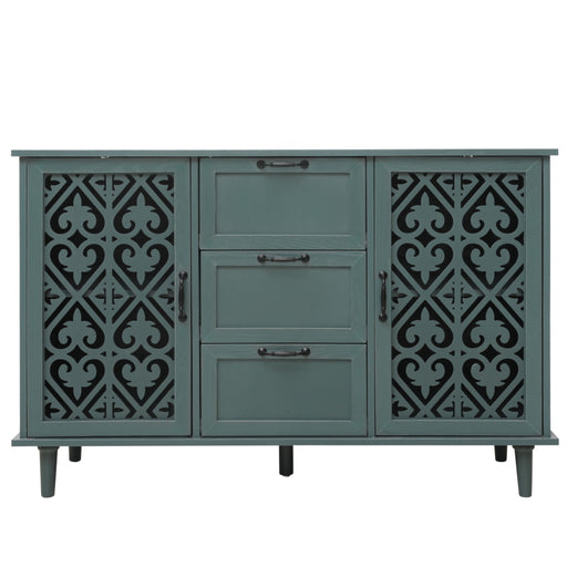 View full detailsHollow Carved 3 Drawer Dresser With Metal Handles, Storage Chest For Living Room Or Bedroom - Blackish Green