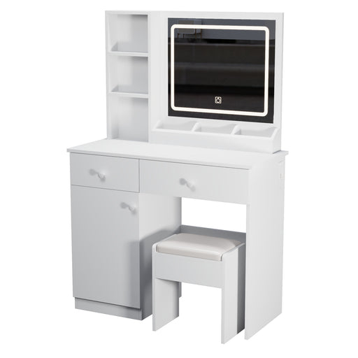 View full detailsFashion Vanity Desk With Mirror And Adjustable Lights, Makeup Table Set With 2 Drawers - White