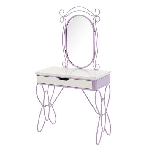 Elegant Butterfly Design: The vanity set showcases intricate butterfly motifs on its metal base and mirror trim, adding a delicate and artist...
