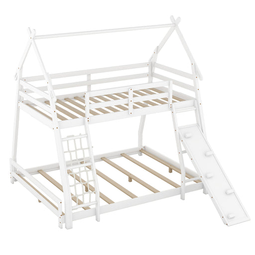 View full detailsTwin Over Queen House Bunk Bed With Climbing Nets And Climbing Ramp