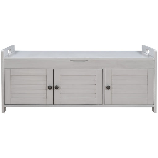View full detailsStorage Bench With 3 Shutter-Shaped Doors, Shoe Bench With Removable Cushion And Hidden Storage Space