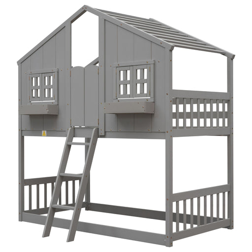 View full detailsHouse Bunk Bed With Roof, Window, Window Box, Door, With Safety Guardrails And Ladder