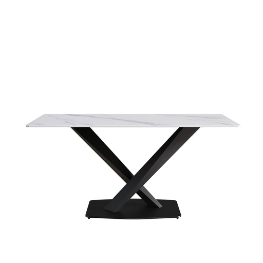 View full details63" Modern Artificial Stone Straight Edge Metal X-Leg Dining Table, 6 People - White / Black