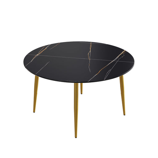 View full detailsModern Artificial Stone Round Dining Table With Golden Metal Legs, Can Accommodate 6 People - Black