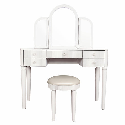 Adjustable LED Lighting: Tri-Fold mirror with three brightness modes for perfect lighting. Textured Drawers: Fluted design adds elegance and offer...