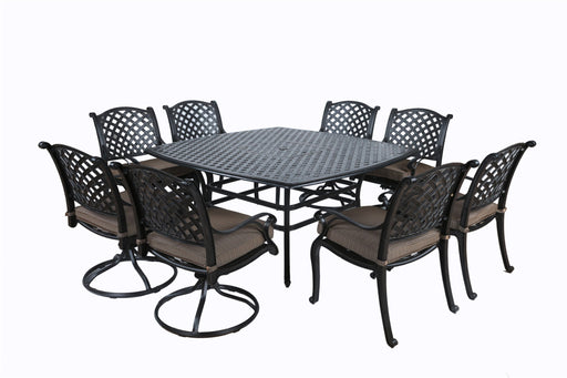 View full detailsSquare 8 Person 64" Long Aluminum Dining Set With Cushions - Antique Brown
