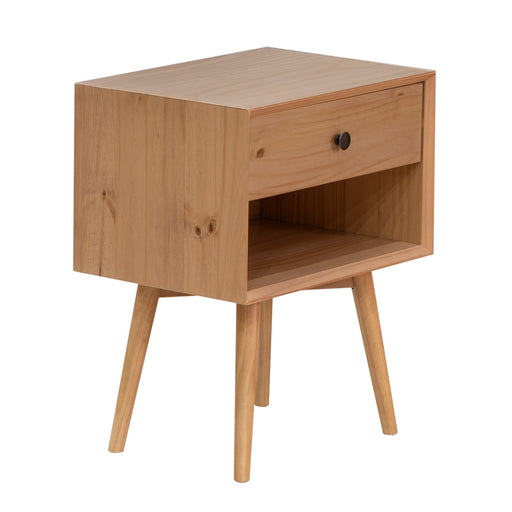 Clean lines and rich finish create a mid-century modern look Open and closed storage Beveled front edges for visual intrigue and a boxy appearance...