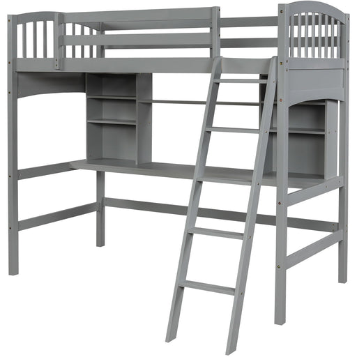 View full detailsLoft Bed With Storage Shelves, Desk And Ladder